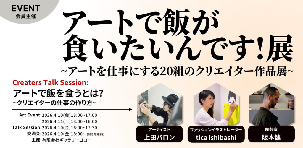 なお、「アートで飯が食いたい」出展者は以下の通りです。(敬称略)