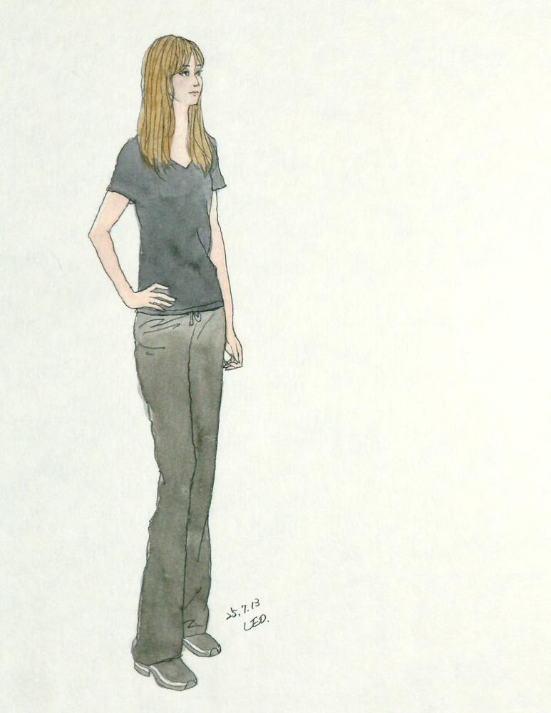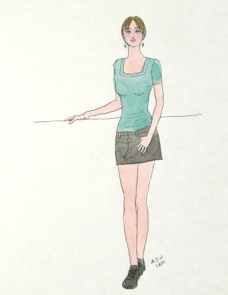 7/13のスケッチ会「女性を描く現場」で描いたアナログ水彩人物画です。