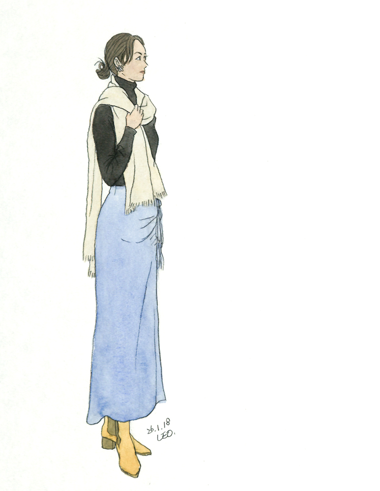 今週末日曜日(2/8)にスケッチ会「女性を描く現場」を開催します。こちらは先月(1/18)のスケッチ会の私の作品、アナログ水彩人物画です。